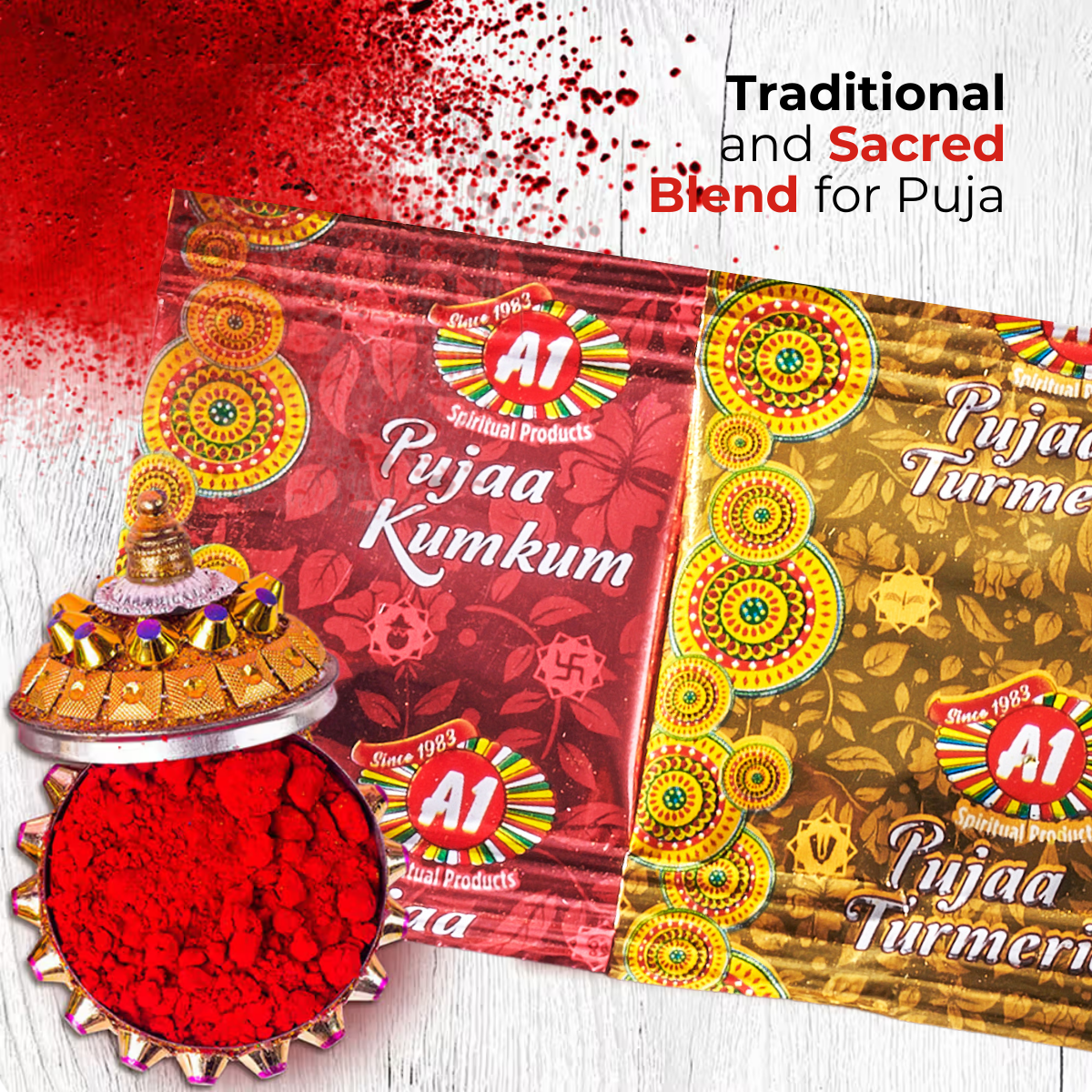 A pinch of kumkum is considered an auspicious start to any pooja, having a cosmetic value, as well as a cultural symbol. Our culture and traditions have long valued ‘kumkum’ (Vermilion) in our rituals. A1 pure Kumkum does not leave any stain on your Forehead.