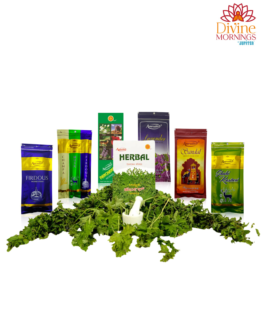 Indulge in the heavenly aromas of Shahi Kasturi, Sandal, Firdous, Amrutha 3 in 1, Herbal, Lavender, and Panchamrutha Agarbatti with the Allure Combo of 7. Elevate your senses, purify your space, and create a serene atmosphere with this luxurious collection. Perfect for gifting or treating yourself to a sensory experience like no other!