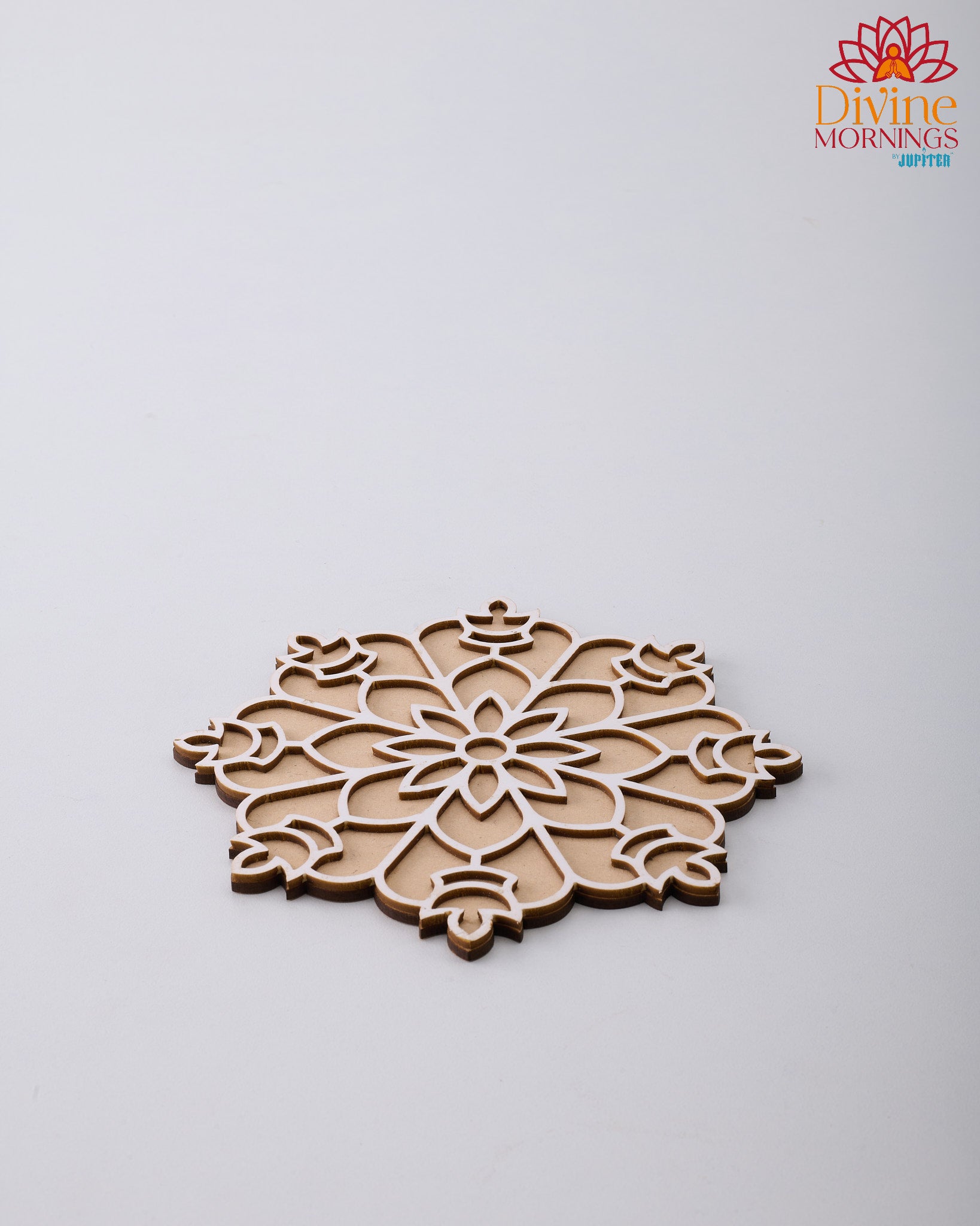 Discover the beauty of traditional Indian art with Diya Garden Rangoli Stencil! Designed for ease of use, this stencil makes creating intricate and colorful rangoli designs a breeze. Simply fill in your stencil before use for stunning results. Bring a touch of culture and beauty to your home with Diya Garden Rangoli Stencil!