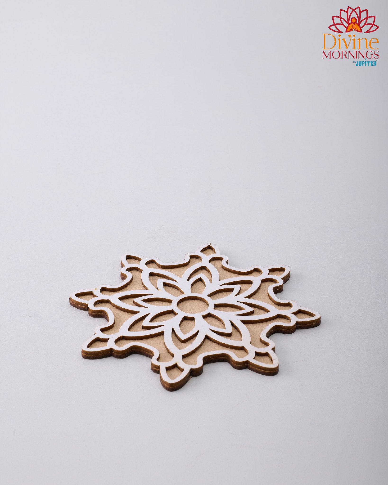 Bring an elegant touch to your home decor with our Floral Frame Rangoli Stencil! This easy-to-use stencil will help you create beautiful rangoli designs with precision and ease. Simply fill the stencil for a flawless finish. Perfect for adding a touch of charm and beauty to any room.