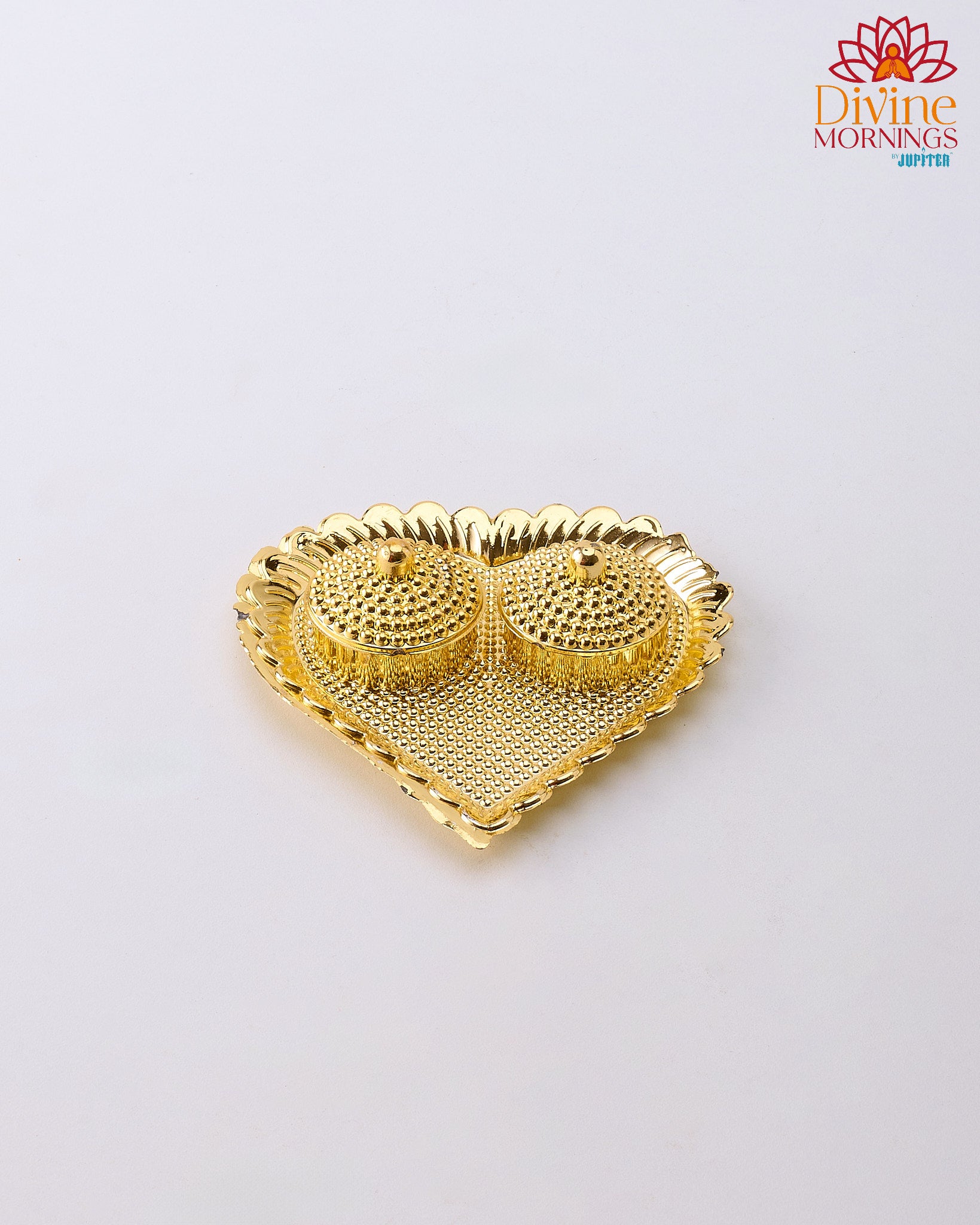 Indulge in the premium tradition of offering haldi kumkum with the Jashn Haldi Kumkum Platter. This exquisite platter can also be used as return gifts, making it a versatile and thoughtful addition to any celebration. Say thank you and offer blessings with style and elegance!
