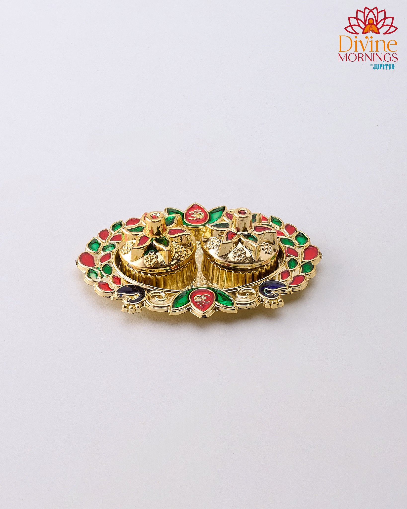 Indulge in the premium tradition of offering haldi kumkum with the Haldi Kumkum Platter. This exquisite platter can also be used as return gifts, making it a versatile and thoughtful addition to any celebration. Say thank you and offer blessings with style and elegance!