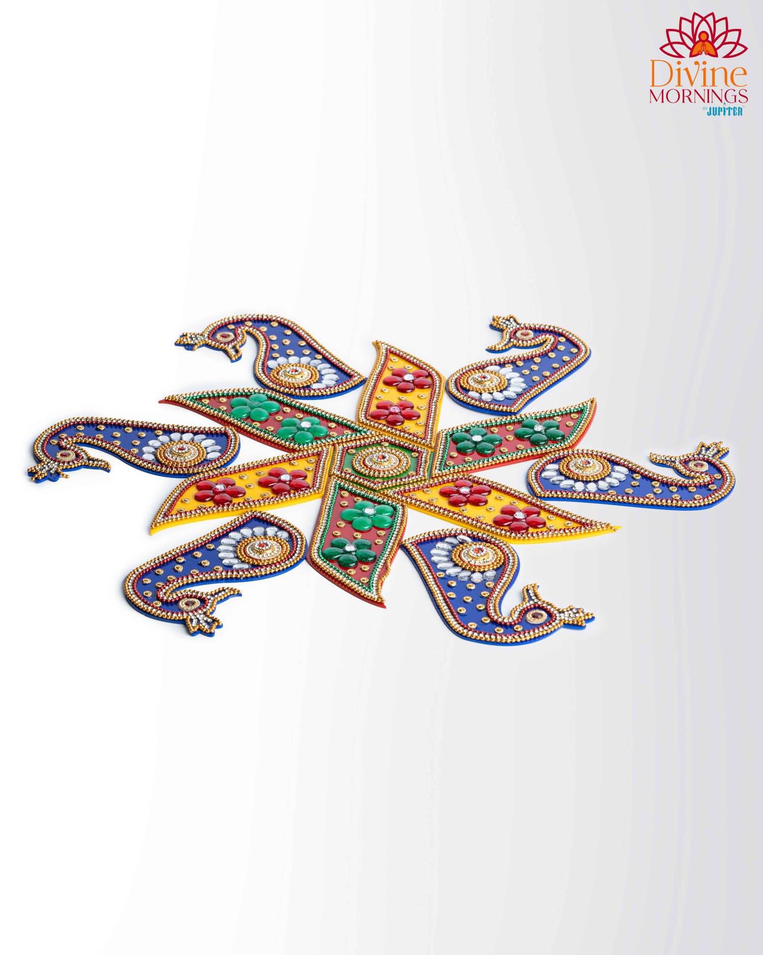 Celebrate tradition with the Classic Peacock Acrylic Rangoli, designed to bring vibrant color and elegance to your home decor. Crafted with durable acrylic, this rangoli features a stunning peacock motif that adds a festive and artistic touch to any space. Perfect for enhancing your celebrations, it combines beauty and longevity, making your festive moments even more special.