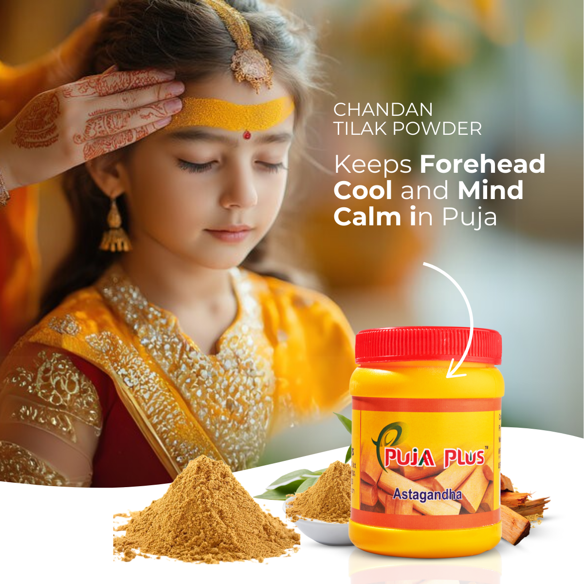 Applying Pujaa Plus Chandan tika on the forehead regulates body aura, eliminates negative energy and feels cool along with the pleasant fragrance associated with it. The calming fragrance and the cooling effect of Chandan stays in your skin and keeps you feeling fresh and divine day long.