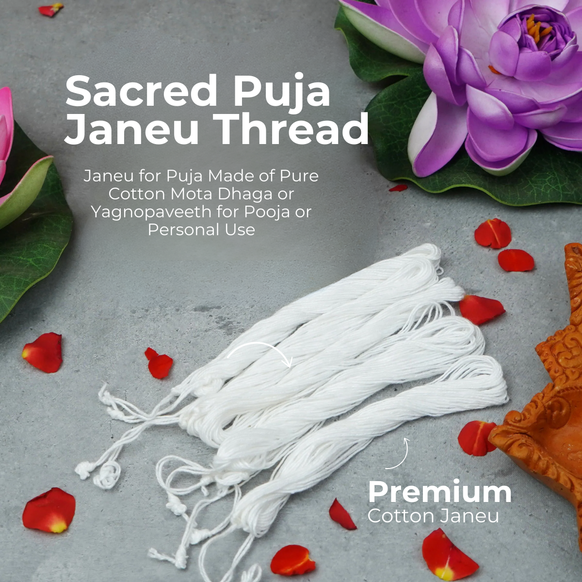 Pure cotton Janeu for Upanayanam, Poojas, and daily rituals. Worn to honor Vedic traditions and spiritual commitment.