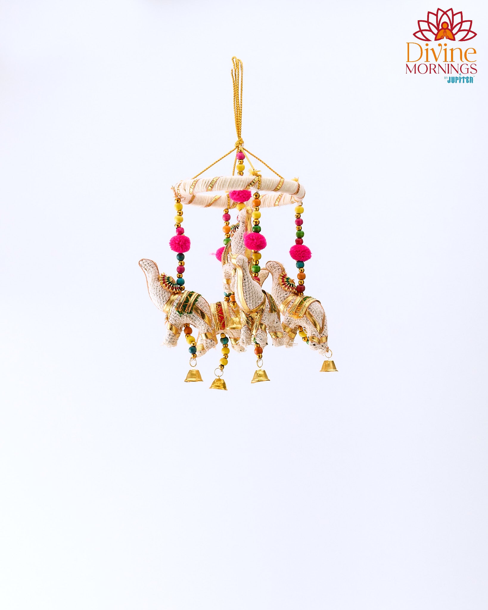 Transform your home into a vibrant Rajasthani oasis with our stunning Rajasthani Ring Jhoomar! Adorned with delicate white jute elephants, this traditional door hanging will add a touch of elegance and charm to any doorway. Bring the rich culture of Rajasthan into your home today!