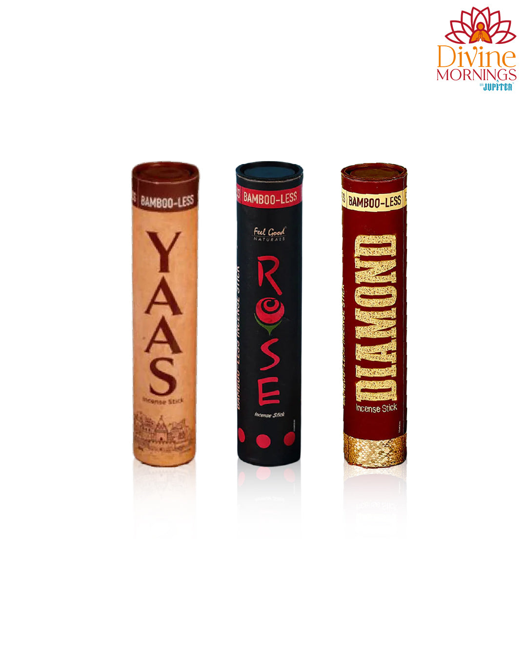 Experience a renewed sense of peace and tranquility with the Sanctum Bamboo-less Combo of 3. Each pack contains Rose, Diamond, and Yaas incense sticks that are 100% bamboo-free. Breathe in the soothing scents and enjoy the benefits of a cleaner, greener environment. Elevate your mindfulness and elevate your life with Sanctum Bamboo-less Combo of 3.