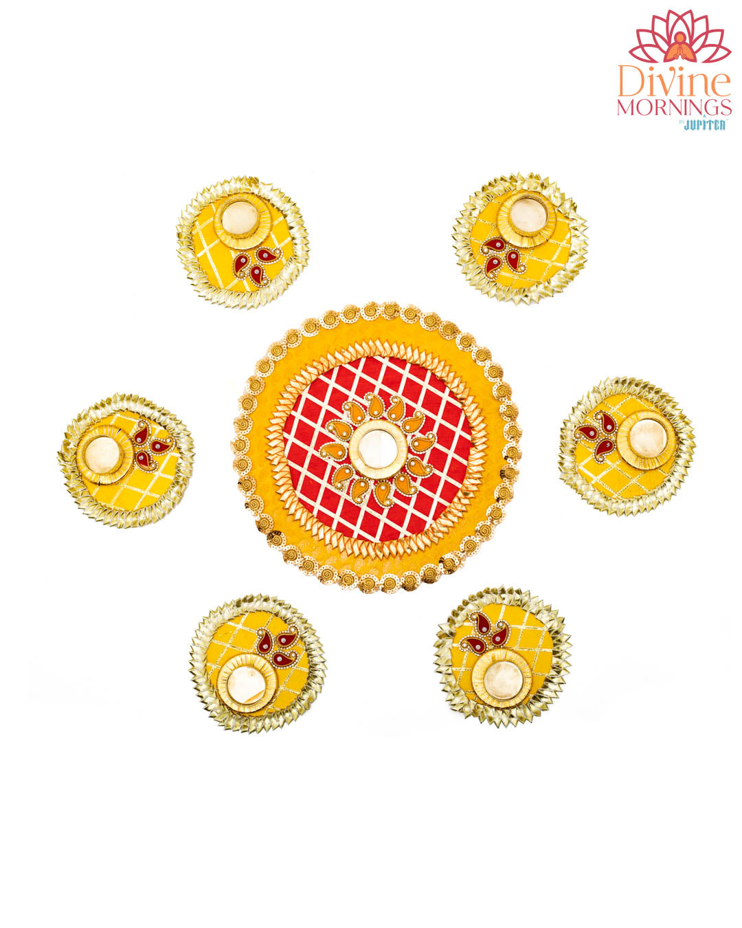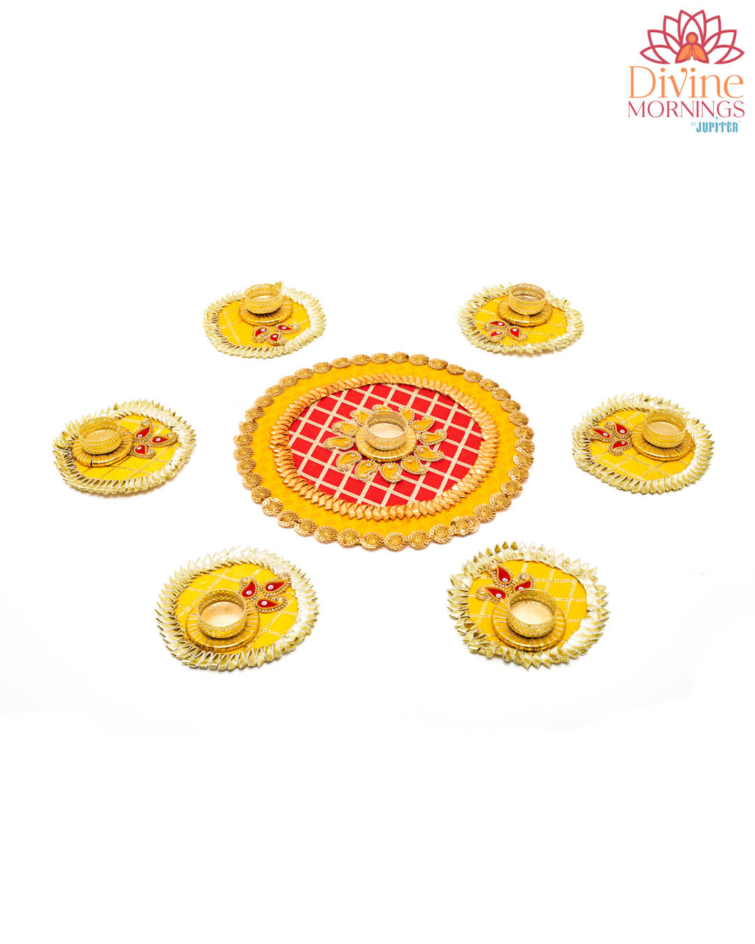 Experience the festive spirit with our Velvique Floor Rangoli set. Made with premium materials, the colorful designs will add a touch of vibrancy to your home. Complete with tealight holders, this set is perfect for creating a warm and inviting atmosphere.